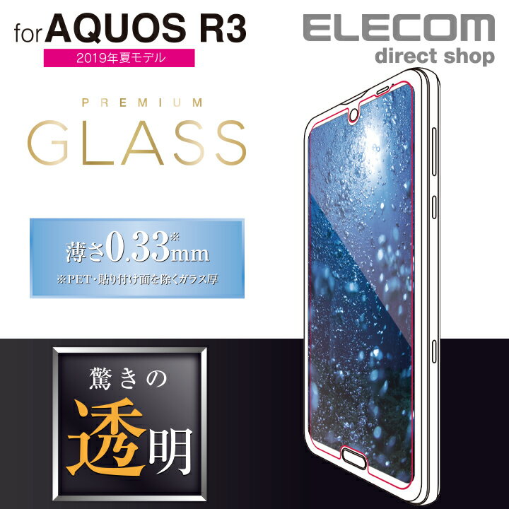 エレコム AQUOS R3 用 ガラスフィルム 0.33mm スマホ アクオス アール3 ガラス フィルム 液晶 保護フィルム PM-AQR3FLGG