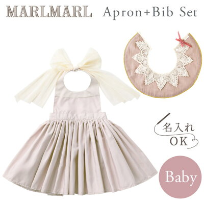 マールマール エプロン+スタイ セット MARLMARL for girls マグノリア【スタイ ビブ よだれかけ】【ベビー エプロン お食事エプロン】【ギフトセット マールマール セット スタイセット】【出産祝い 女の子】【マールマール marlmarl 名入れ】【即納】